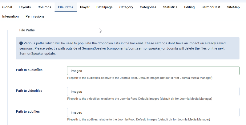 I've noticed in the SermonSpeaker Options the sources are set to the Images folder. Where are these options stored in the DB tables? Our sermons are stored in /public_html/Sermon_MP3s