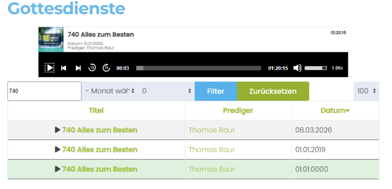 The problem though is that old sermons are still shown in the frontend although we deleted the speaker and the entries. The last one is shown multiple times although we deleted all old entries (even from the bin) and in FTP (see screenshot).
